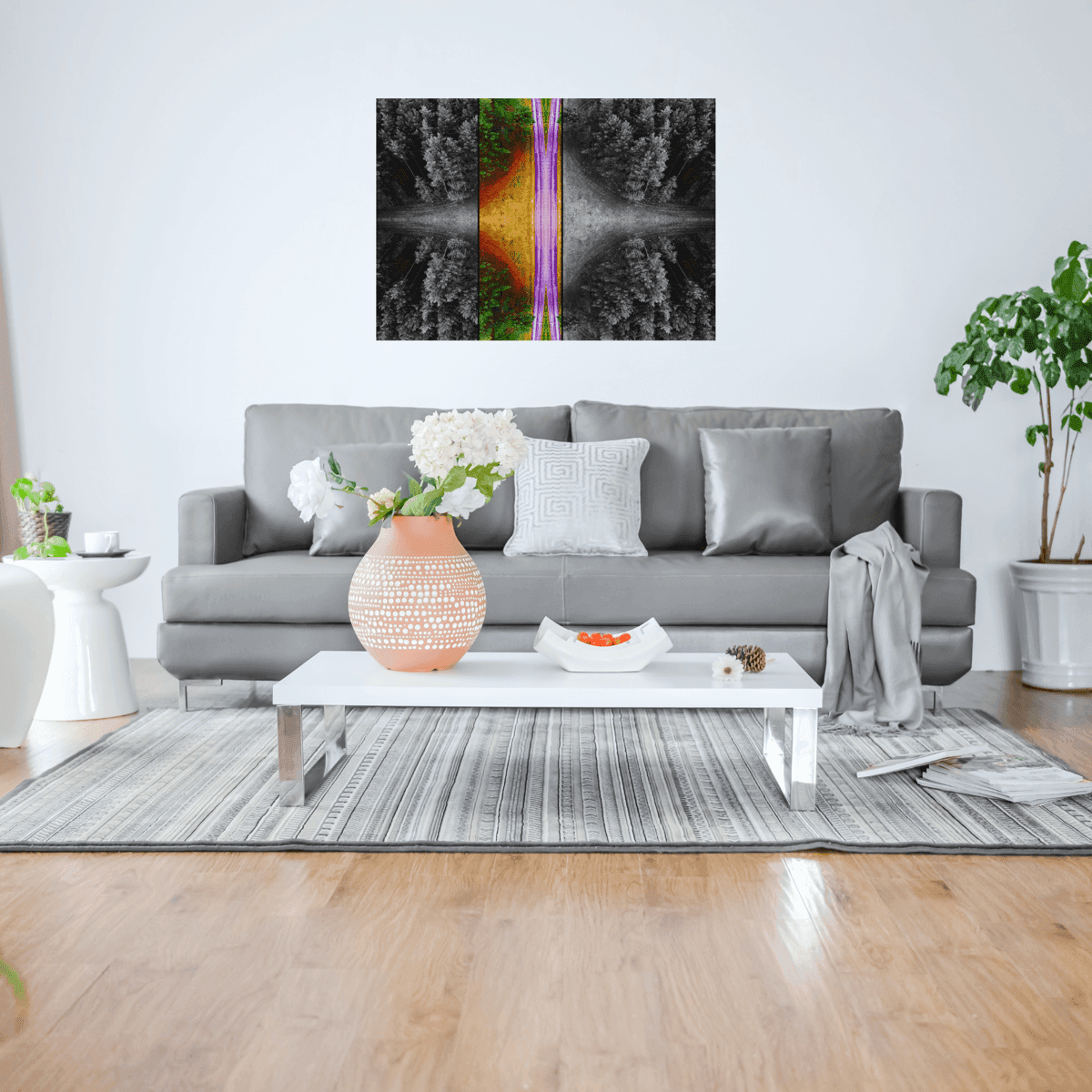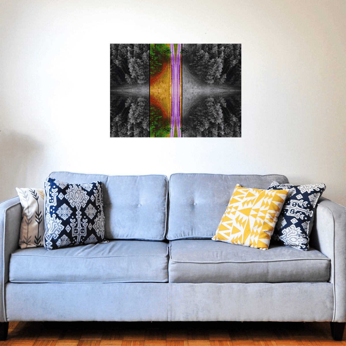 An image of a road enveloped by trees, rendered in monochromeBirdeye IV